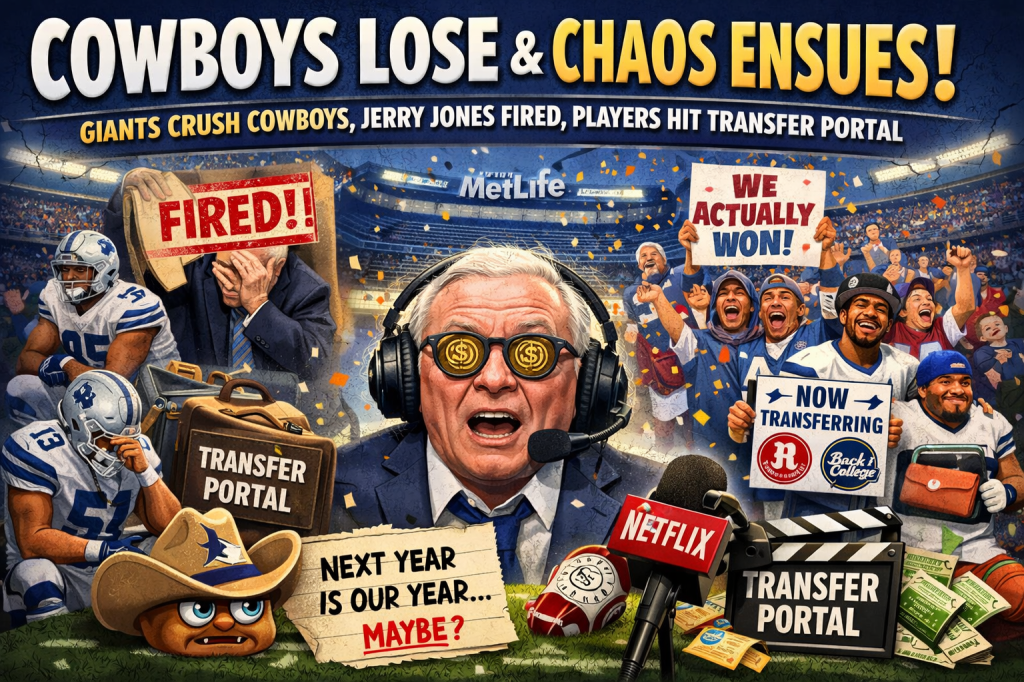 ARLINGTON, TX (via East Rutherford, NJ) — The Dallas Cowboys officially ended their season Sunday night by turning MetLife Stadium into a federally recognized disaster zone, losing their finale to the New York Giants in a drubbing so thorough that it triggered seismic activity, several existential crises, and—briefly—the firing of Jerry Jones as owner of the franchise.