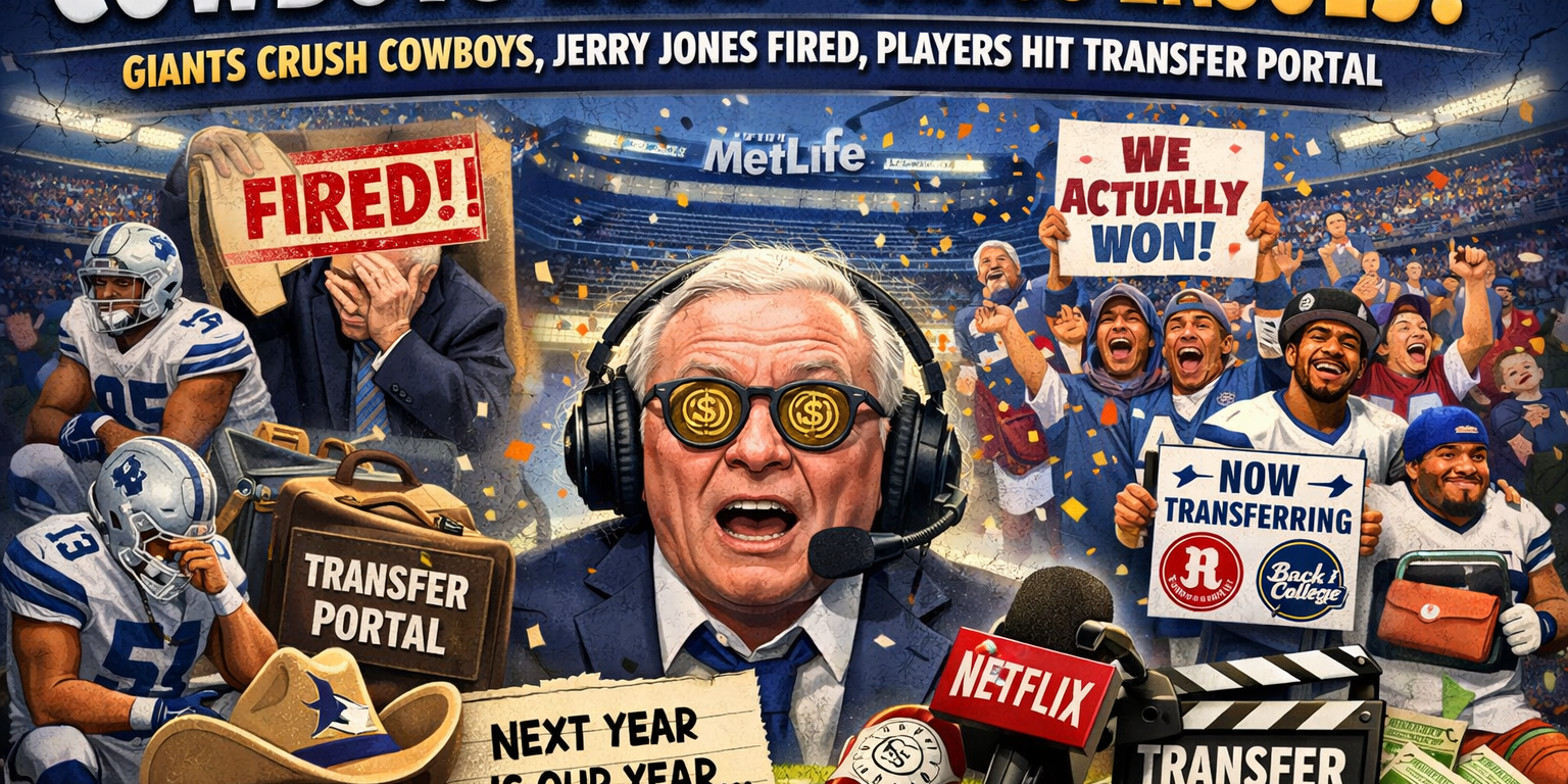 ARLINGTON, TX (via East Rutherford, NJ) — The Dallas Cowboys officially ended their season Sunday night by turning MetLife Stadium into a federally recognized disaster zone, losing their finale to the New York Giants in a drubbing so thorough that it triggered seismic activity, several existential crises, and—briefly—the firing of Jerry Jones as owner of the franchise.