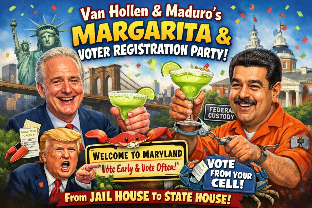 Under the senator’s alleged proposal, Maduro would be invited to take up “symbolic residency” somewhere between Bethesda and Silver Spring, immediately qualifying him to vote in Maryland elections—despite, critics point out, the minor detail of being under federal indictment and physically confined to a detention facility.