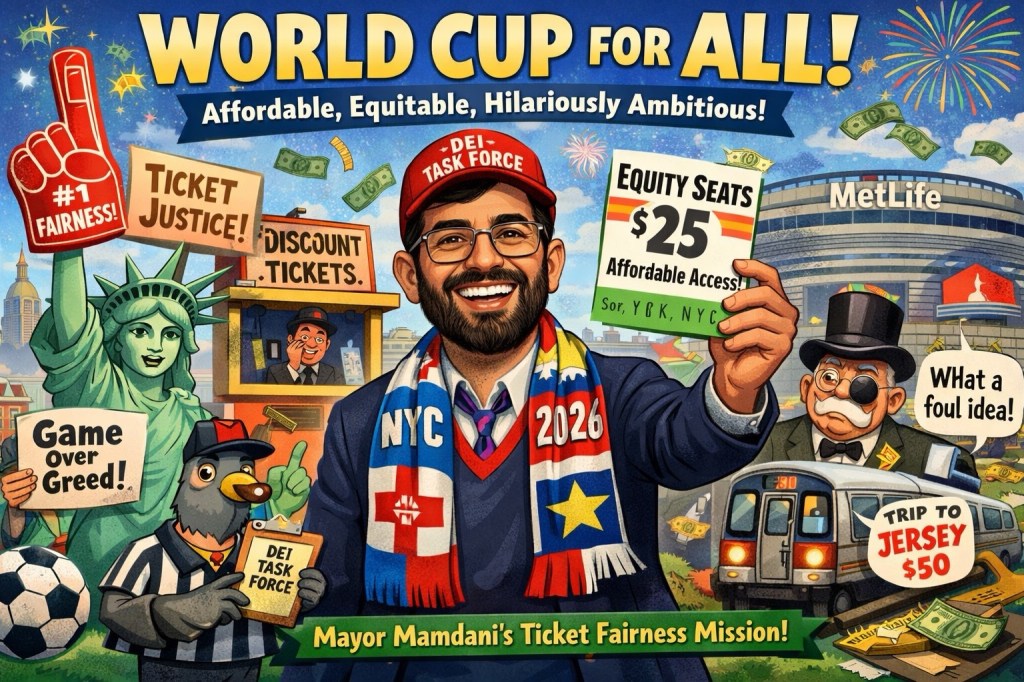 “We believe soccer shouldn’t only be for billionaires and resale sharks,” the mayor said, gesturing at reporters over 15-foot posters that read, “Game Over Greed.” Mamdani’s office has even launched a petition demanding fixed prices and a set-aside of discounted seats for local residents to ensure that everyone can attend the matches — even those who normally think “dynamic pricing” refers to their Wi-Fi signal.