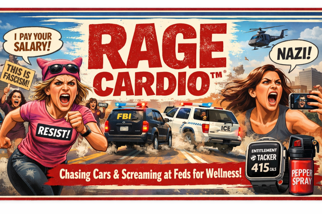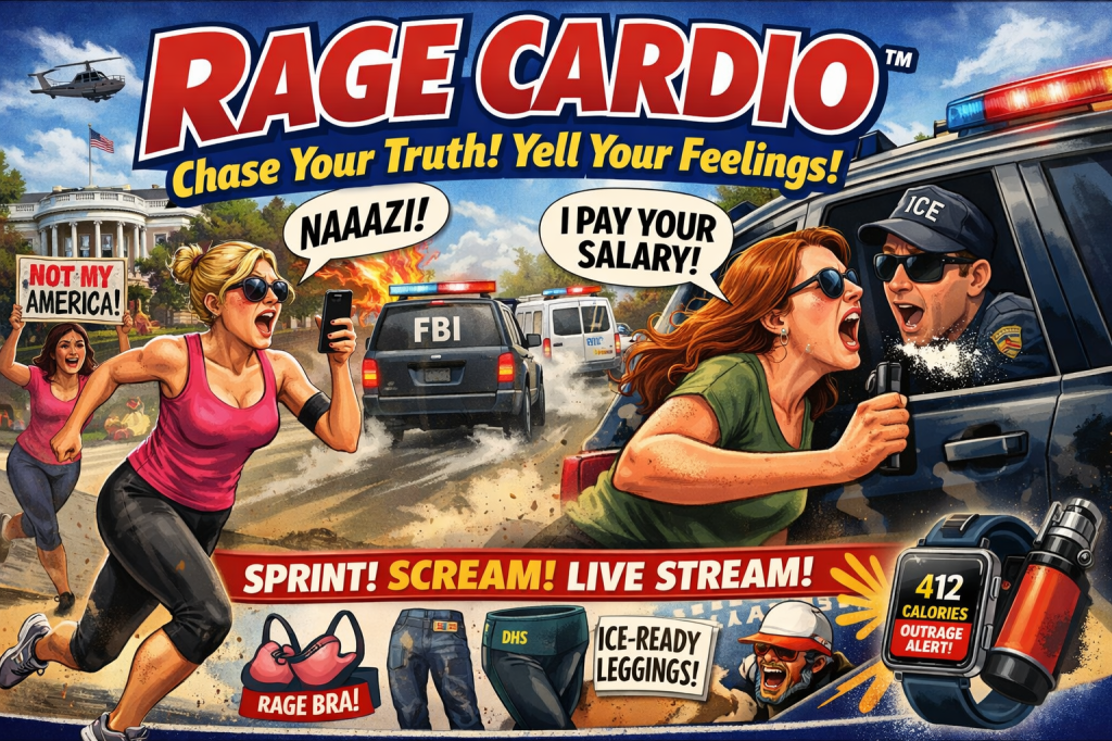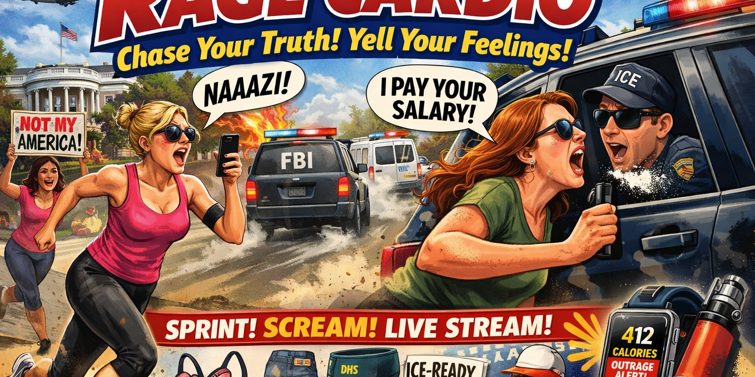 In a stunning blow to the athleisure industrial complex, white liberal women across America have reportedly abandoned yoga mats, SoulCycle bikes, and silent meditation retreats in favor of the hottest new fitness phenomenon of 2026: chasing cars driven by federal agents while rage-yelling unresolved entitlement directly into the wind.