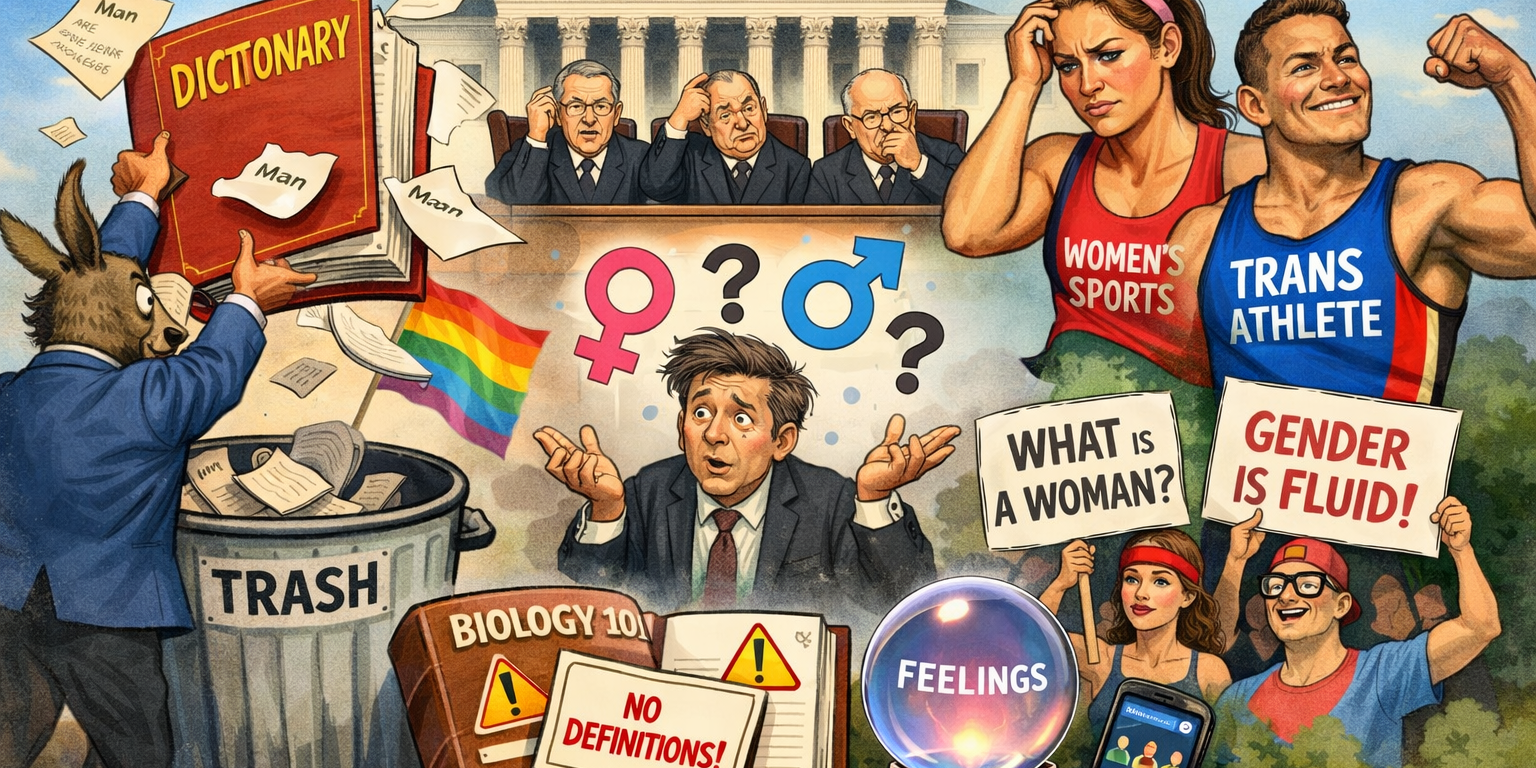The underlying case centers on women’s sports — an area Democrats once described as essential to protecting fairness and opportunity for female athletes. That was before the discovery that protecting women requires never explaining what one is.