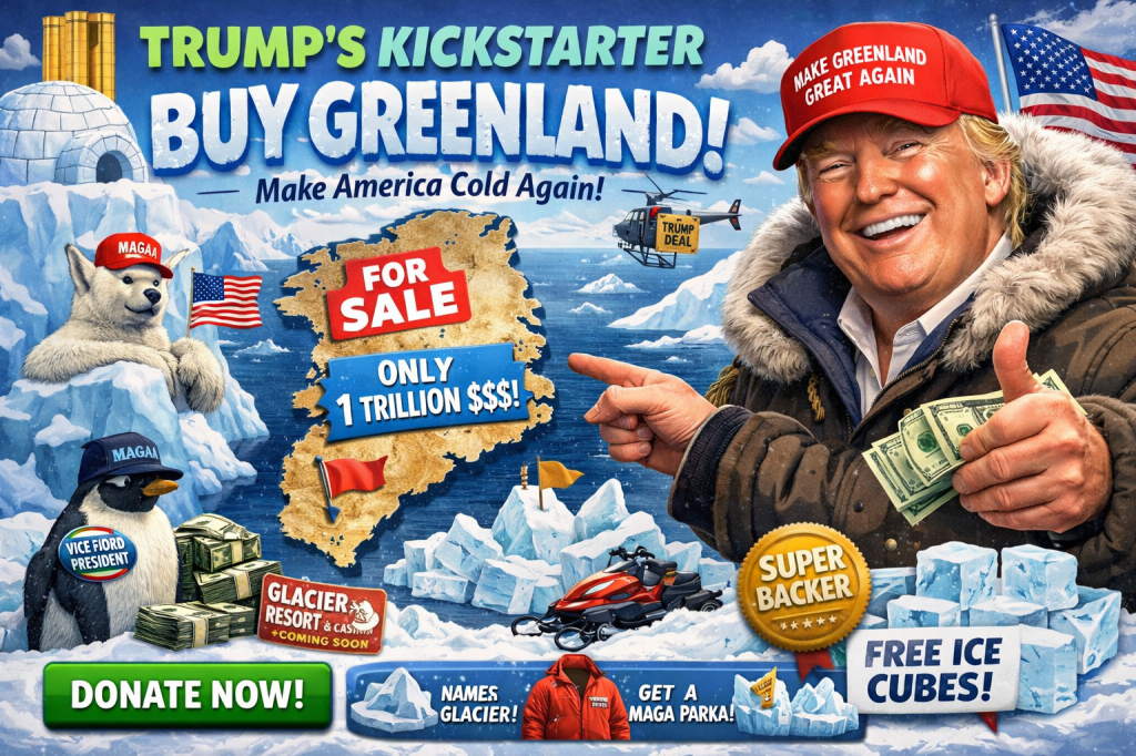 After failing to buy Greenland the traditional way—by asking nicely and then insulting Denmark—Trump confirmed that crowdfunding was the only remaining path forward.