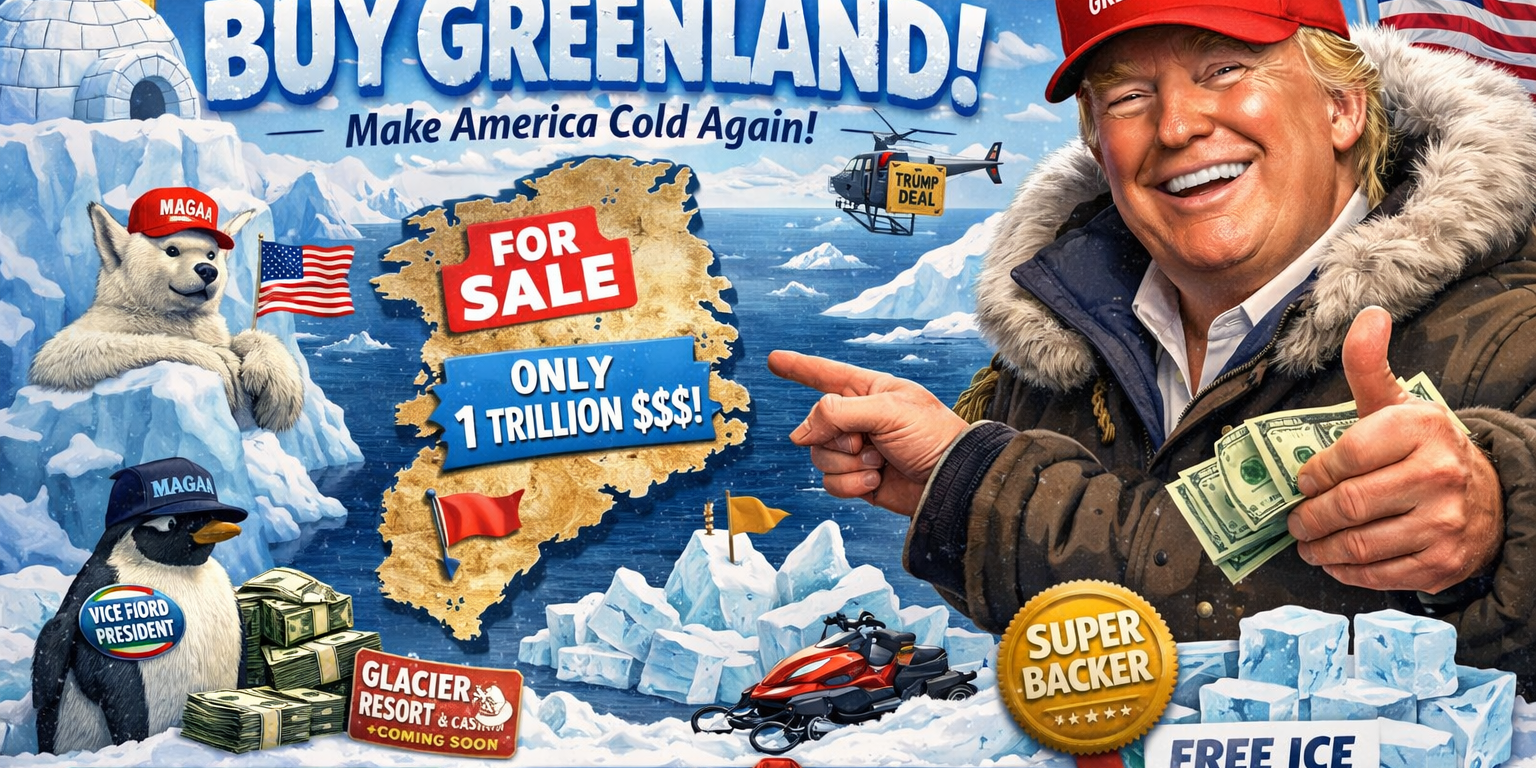 Stretch goals include turning Greenland into America’s “strategic freezer,” installing golf courses “once the ice cooperates,” and selling Greenland real estate NFTs that definitely represent something.