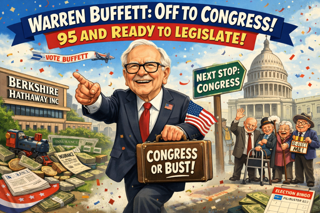 Markets barely moved on the news, with analysts noting that Buffett leaving Berkshire Hathaway is “far less disruptive than Congress gaining someone who understands math.”