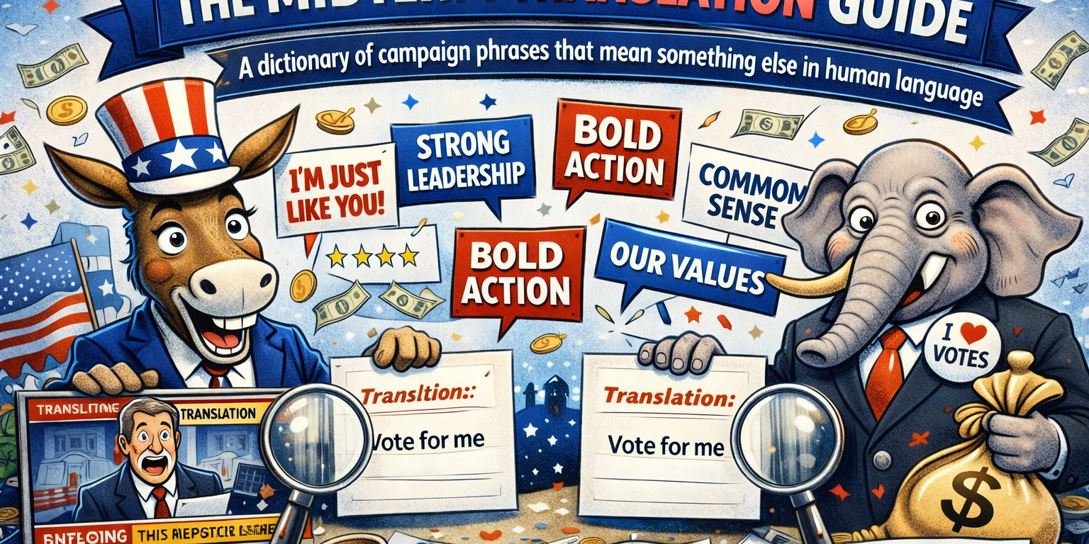 This guide exists to translate the most common phrases you’ll hear during the 2026 midterms into something closer to what they actually mean — not cynically, just realistically.