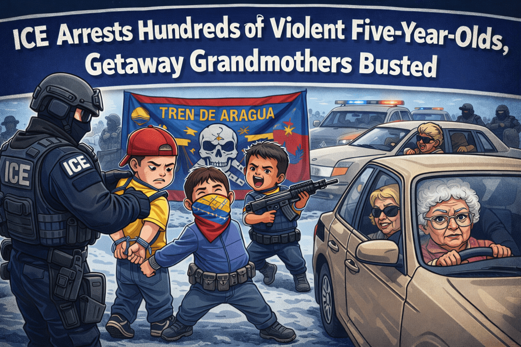 WASHINGTON—In what officials described as “deeply inconvenient to several cable news narratives,” ICE announced the arrest of hundreds of extremely dangerous five-year-olds allegedly affiliated with the notorious transnational gang Tren de Aragua, with their grandmothers apprehended nearby for allegedly serving as the organization’s logistics wing and primary wheelmen.