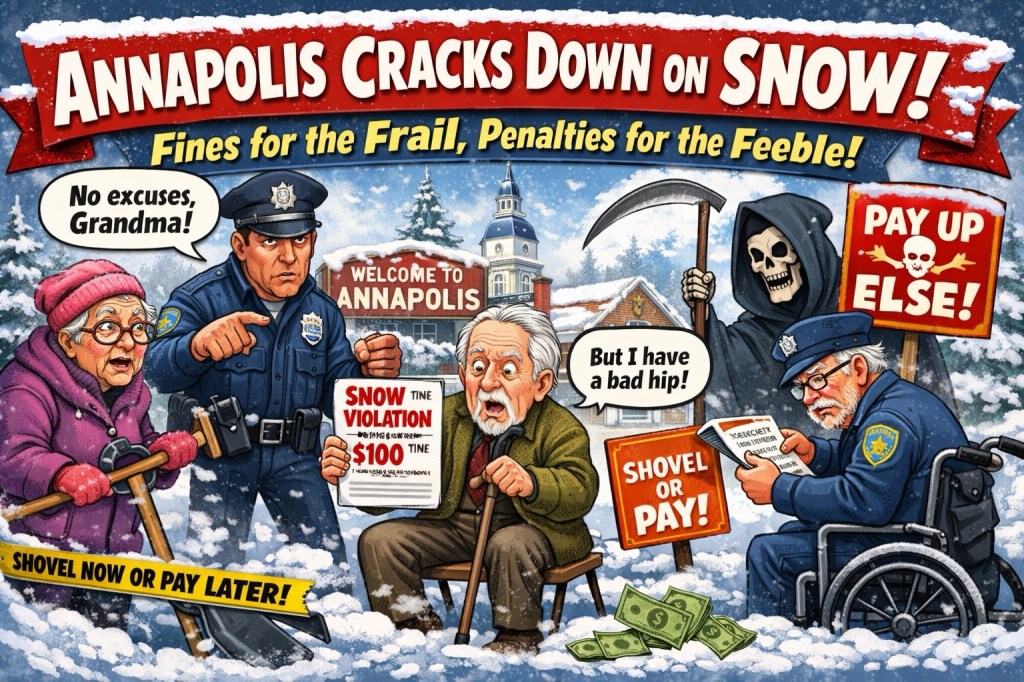 Officials insist the enforcement effort is about “safety and accessibility,” particularly for seniors and residents with disabilities. To demonstrate this commitment, the same seniors and disabled residents will now be fined for failing to shovel snow that (1) fell from the sky, (2) was not ordered by them, and (3) may be physically impossible for them to remove without violating several laws of biology.