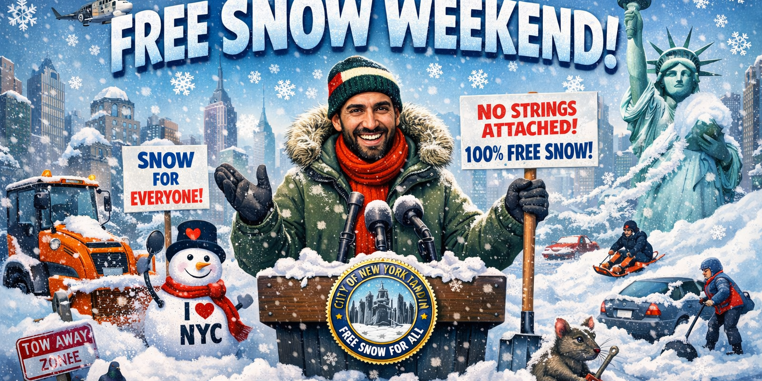 NEW YORK, NY — In a bold act of progressive generosity that absolutely nobody asked for and meteorologists swear they had nothing to do with, New York City Mayor Zohran Mamdani announced Saturday that all city residents will receive free snow this weekend — no strings attached.