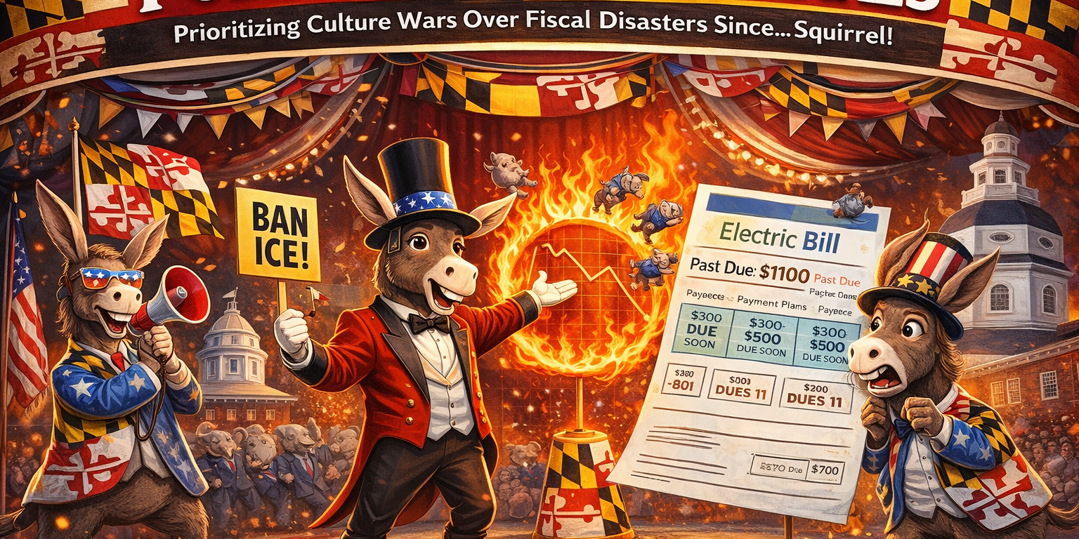 ANNAPOLIS — Maryland Democrats confirmed this week that the state’s official governing philosophy for 2026 is “three-ring circus, no intermission.” While residents squint at electric bills that look like ransom notes, lawmakers have bravely chosen to focus on the true crisis facing Maryland: whether local cops are insufficiently hostile to federal law enforcement.