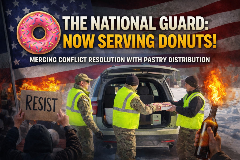 In what historians will one day describe as “the moment America finally jumped the shark and then offered it a donut,” Tim Walz has reportedly deployed the National Guard—not to restore order, not to secure perimeters, not even to look vaguely authoritative—but to hand out donuts.