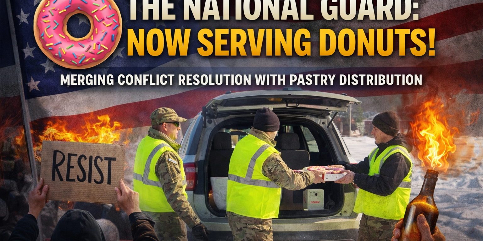 In what historians will one day describe as “the moment America finally jumped the shark and then offered it a donut,” Tim Walz has reportedly deployed the National Guard—not to restore order, not to secure perimeters, not even to look vaguely authoritative—but to hand out donuts.
