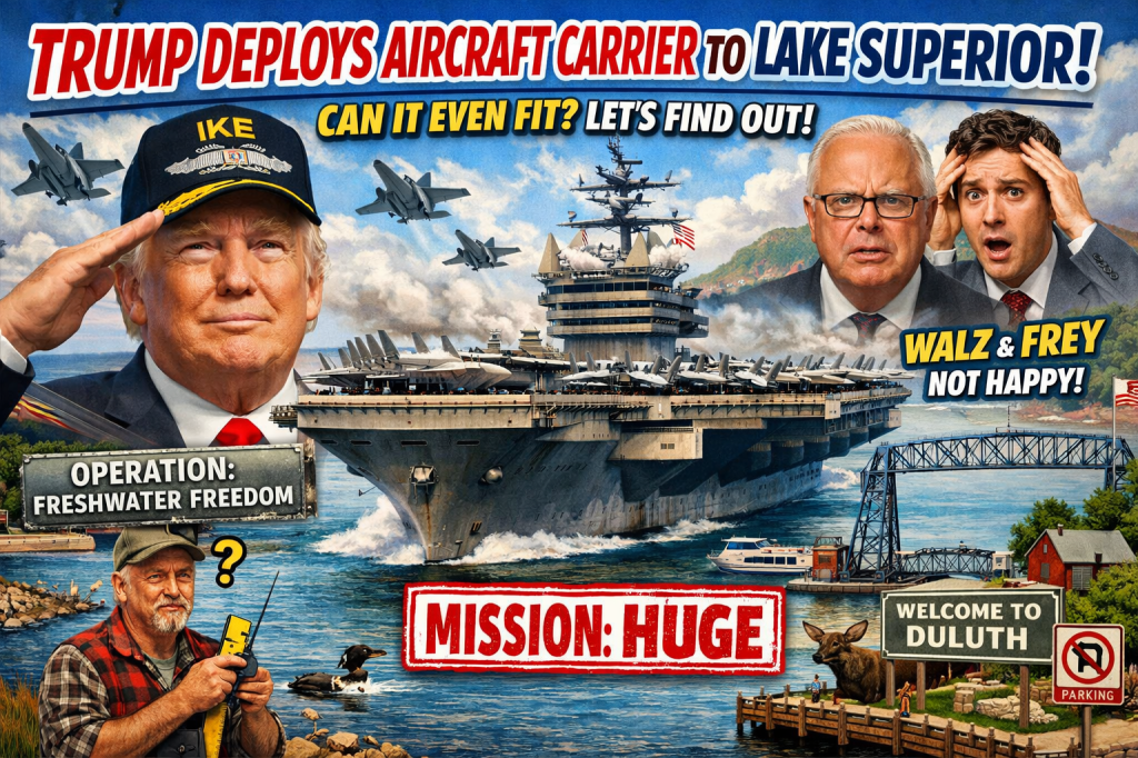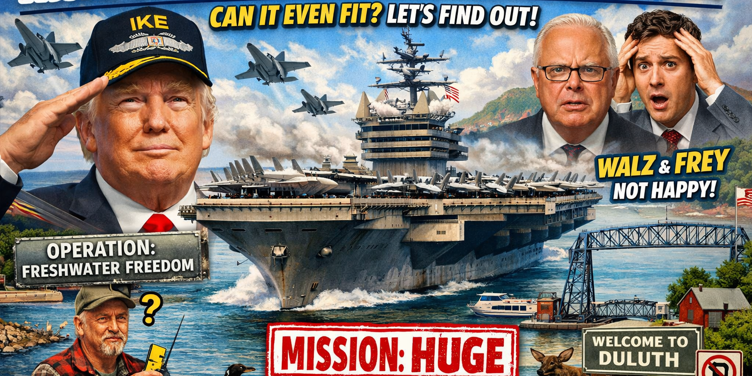 WASHINGTON—In what experts are calling “bold, maritime, and extremely North Dakota-adjacent,” President Donald Trump announced Tuesday that the U.S. Navy is deploying the USS Dwight D. Eisenhower to Lake Superior as a show of force to quell riots and attacks against federal agents—allegedly incited by Minnesota Gov. Tim Walz and Minneapolis Mayor Jacob Frey.