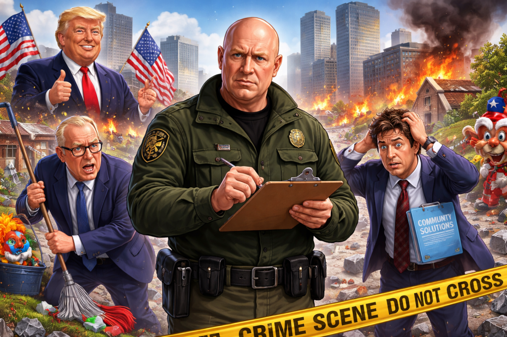 As of press time, Minneapolis was last seen returning borrowed shopping carts, reattaching street signs, and remembering that laws are not optional. The clowns remain under supervision. The bulldozer is still idling.