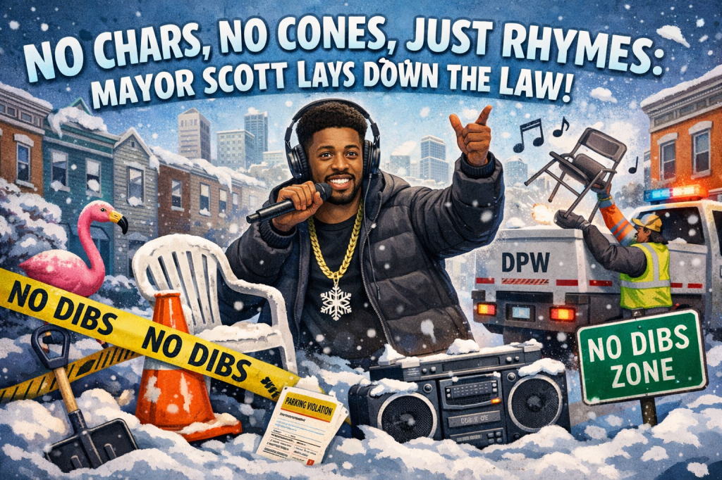 For decades, Baltimore residents have treated snow chairs, milk crates, traffic cones, and the occasional haunted lawn flamingo as if they were notarized property claims. Dig out a space? Drop a chair. Someone parks there? Baltimore Trial by Side-Eye.