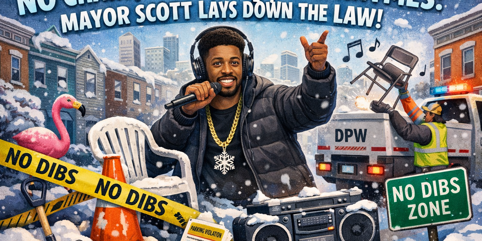 For decades, Baltimore residents have treated snow chairs, milk crates, traffic cones, and the occasional haunted lawn flamingo as if they were notarized property claims. Dig out a space? Drop a chair. Someone parks there? Baltimore Trial by Side-Eye.