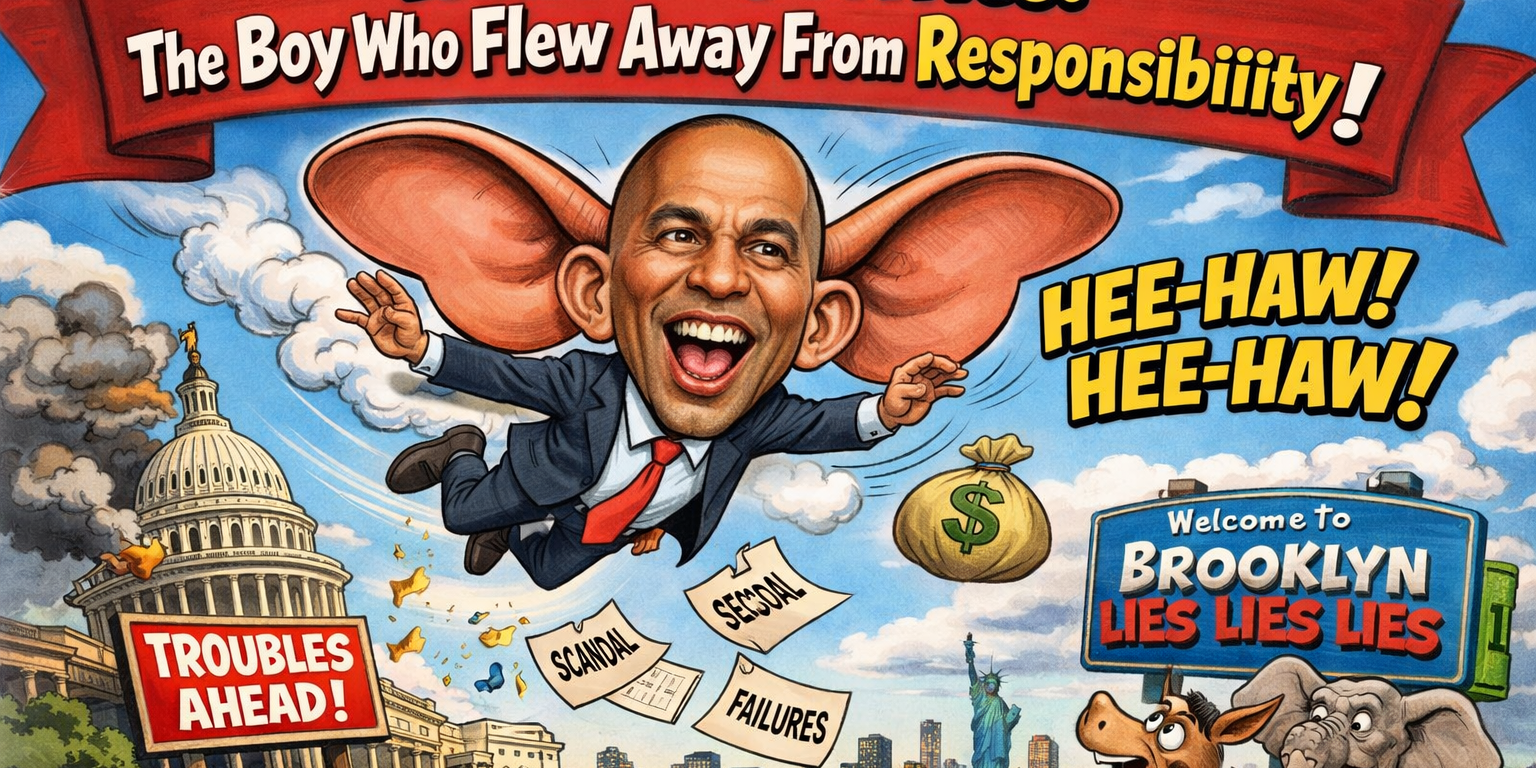 Once upon a time in Brooklyn, there lived a boy named Hakeem Jeffries—a boy whose ears were so impressively aerodynamic that local kids swore he could catch a cross-breeze off Flatbush Avenue and glide clean out of accountability.