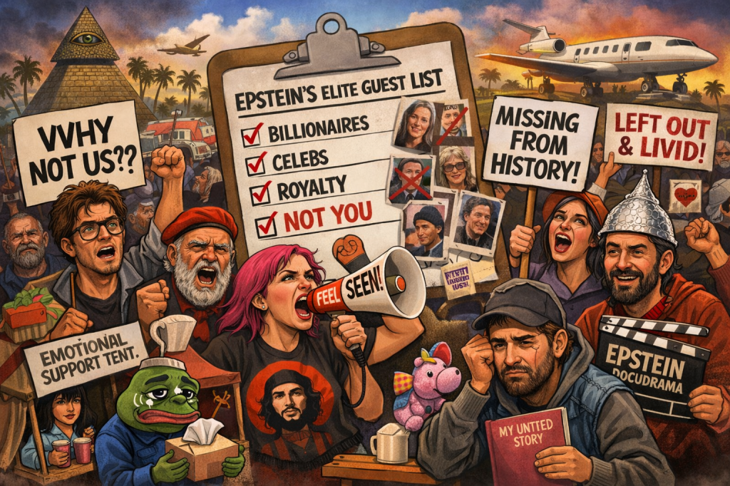 “This is about representation,” shouted one organizer through a megaphone powered by a solar panel and spite. “If billionaires, royalty, and random financiers can get named, why not us? We were vibing in the 2000s. We were adjacent.”