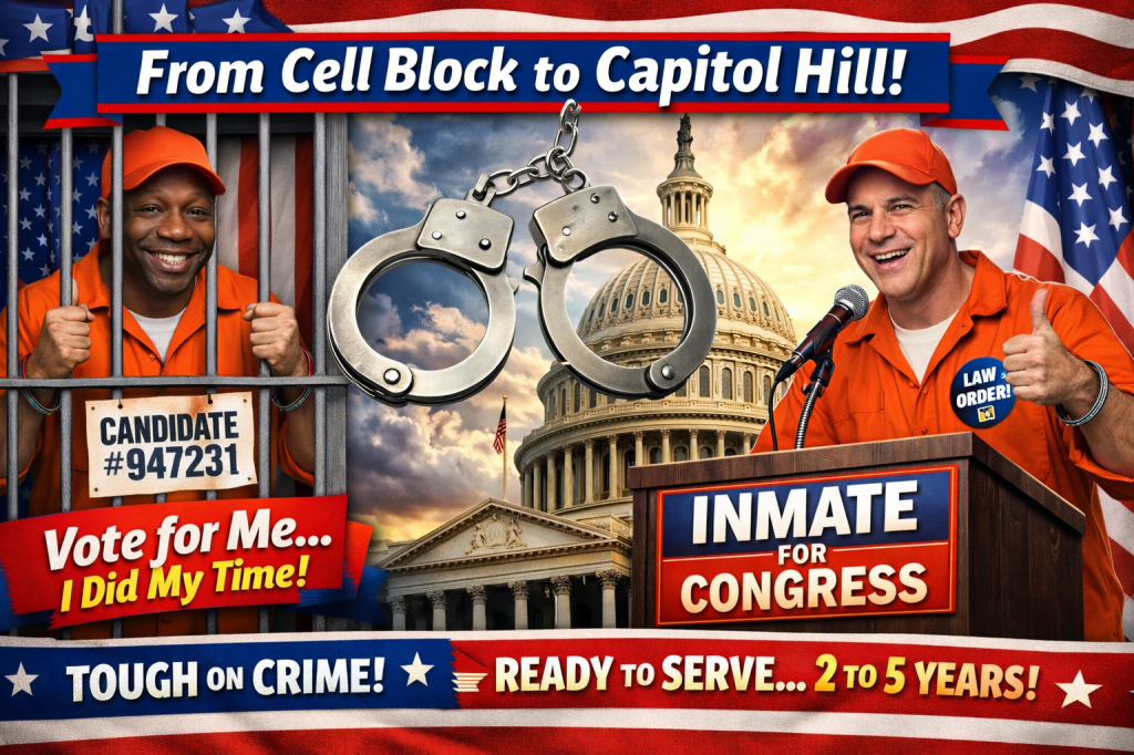 VIRGINIA BEACH, VA — In what political analysts are calling “the most honest campaign launch in years,” a Virginia Beach inmate currently serving time for abduction and rape has officially announced his bid for Congress—proving once and for all that nothing says “public service” like a federal indictment résumé.