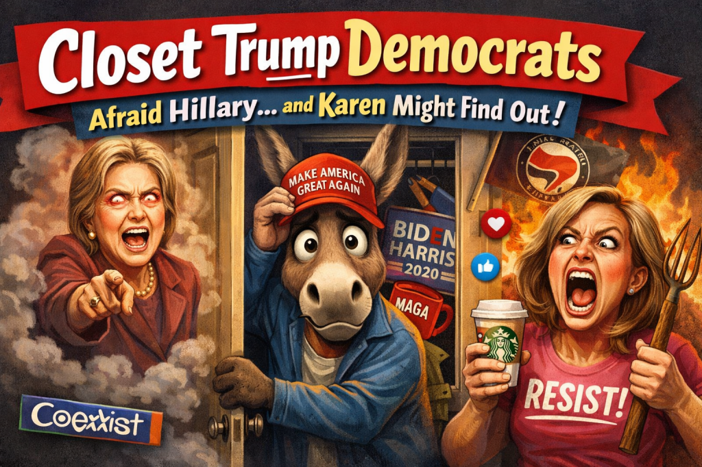 According to researchers, these “Closet MAGAcrats” live in constant fear of being exposed by what one respondent described as “a hyper-alert book club moderator with a ‘Coexist’ bumper sticker and a direct line to the neighborhood group chat.”