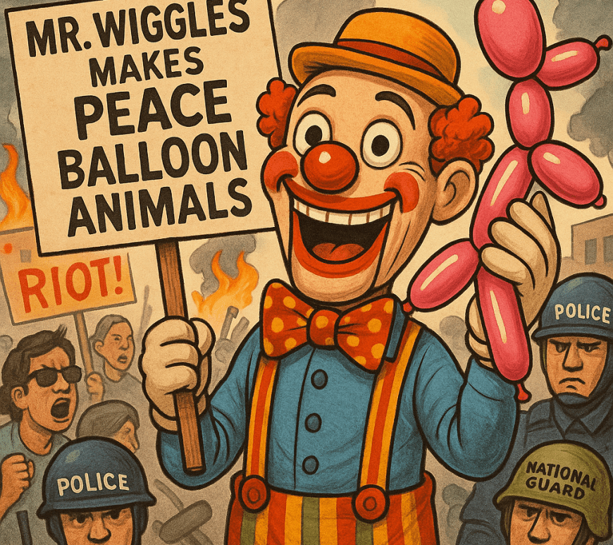 Mr. Wiggles attended a protest in LA, misunderstanding a dark web ad that instructed him to “act like a riot.” Instead of inciting unrest, he diffused tension with humor and balloon animals, even feeding ICE agents and the National Guard. His actions sparked mixed reactions, prompting a discussion on protest dynamics. Continue reading BREAKING: Mr. Wiggles Shows Up to LA Protest Thinking He Was Hired to “Act Like a Riot,” Ends Up Feeding ICE and National Guard Instead
