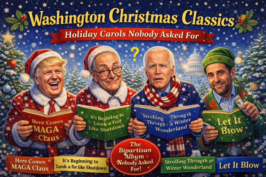 The parody reflects on the looming government shutdown, likening it to the Christmas season. Progress is stalled by routine political rhetoric and futile negotiations, as staff prepare for potential layoffs. Amidst the familiar chaos, the cycle of blame and uncertainty continues, leaving workers and markets in a state of anxious anticipation.