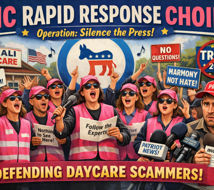 The Democratic National Committee has deployed its Pink Vest Rapid Response Choir in Minneapolis to deter reporters from investigating alleged fraud outside Somali daycare centers. The choir, known for its musical tactics at protests, aims to create a harmonious environment that deflects critical questions, marking a new phase in political crisis management through performance art. Continue reading JUST IN: DNC Deploys Pink-Vest Rapid Response Choir to Minneapolis, Unleashes Broadway Defense Against Daycare Fraud Reporting