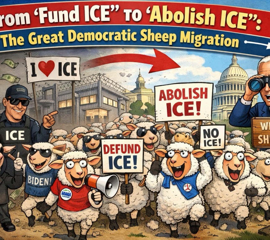 Once upon a time, Democrats funded and defended ICE. Now they chant against it like it was invented yesterday. Welcome to the Great Democratic Sheep Migration—where yesterday’s policy becomes today’s outrage, and no one is allowed to remember the voting record. Continue reading From ‘Fund ICE’ to ‘Abolish ICE’: The Great Democratic Sheep Migration