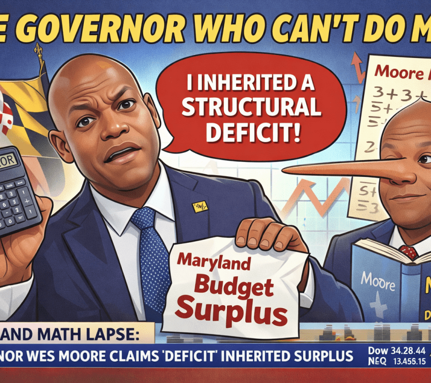 Governor Wes Moore has claimed Maryland faces a significant structural deficit, despite inheriting a multi-billion-dollar surplus. Critics argue his portrayal of finances lacks credibility, pointing out that basic arithmetic contradicts his statements. Ultimately, the issue lies not in math but in how the governor communicates financial realities to the public. Continue reading Math Is Hard: A Love Story Between Maryland’s Governor and a Calculator