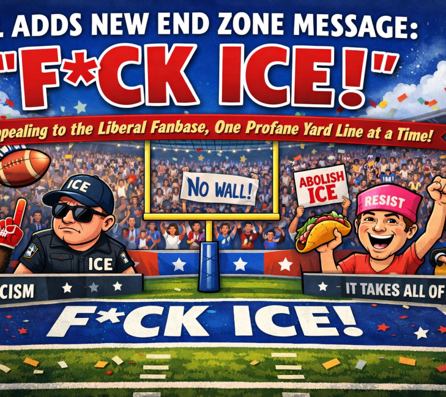 The NFL is introducing a new end zone message, “F*CK ICE!”, as part of its Inspire Change initiative to connect with its liberal fanbase. This controversial slogan will appear alongside existing social justice phrases. Reactions are mixed, with supporters praising the league’s boldness while critics question its relevance to sports. Continue reading NFL Announces New End Zone Message: “F*CK ICE!”