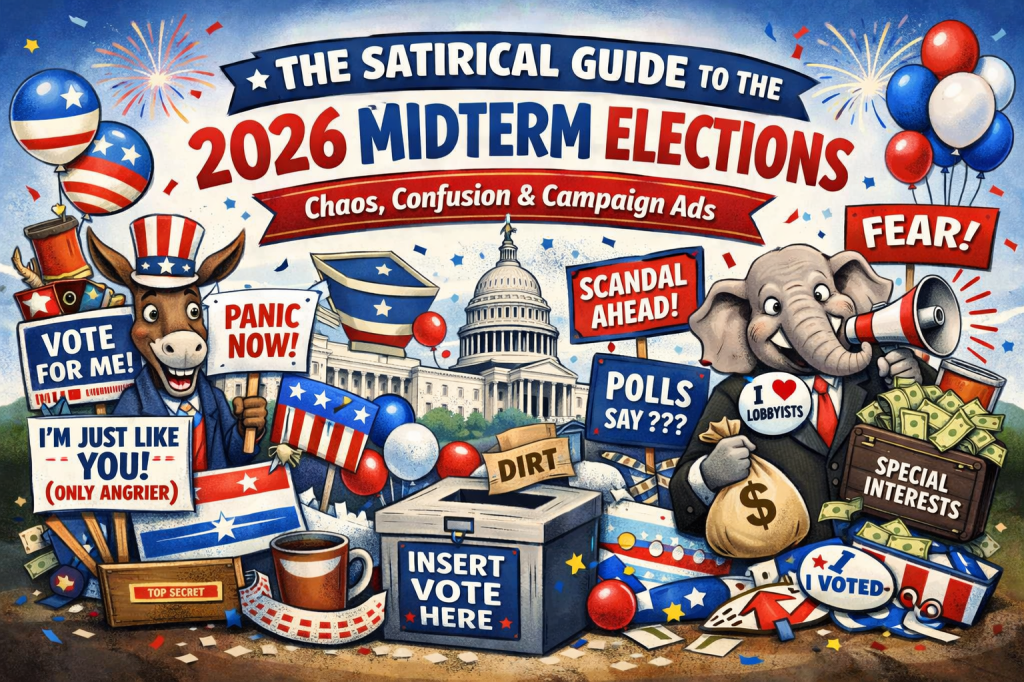 Welcome to the Satirical Guide to the 2026 Midterm Elections — a running series designed to explain how the midterms work while roasting the modern election circus with a calm, responsible flamethrower.